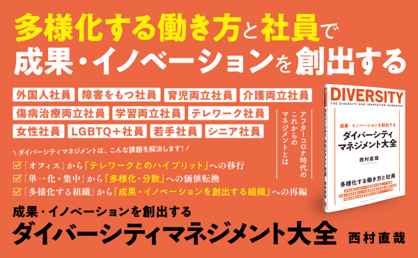 本書は35年以上人材育成コンサルティングに携わっている西村直哉氏が、これから無視することのできないダイバーシティを活かし、成果を出すためのマネジメント方法を様々な切り口で丁寧に、色々なマネジメント方法を詳しく解説しています。今後ダイバーシティにはどのような種類があり、各カテゴリー別にどのようにマネジメントしていく必要があるのか?