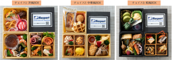 株式会社マックスパート(東京都千代田区丸の内、代表取締役社長 片山 達哉)は、11月1日にオンライン懇親会サービスより、イベントの目的や参加者様に合わせて選べる「チョイスプラン」を販売開始いたします。華やかな見た目のメニューBOXから、ボリューム重視・質重視など、特徴の違う3つの和洋中BOXからお好きなメニューをお選びいただけます。コロナの影響で、リアルの場で集まる事を自粛されている企業様が多い中、オンラインを活用した懇親会・パーティーで開催検討される企業様も増えてまいりました。そんな懇親会の「オンライン化」に向けて、お好みに合わせて選べるメニューで、より価値の高い懇親会・パーティーの手助けをいたします。