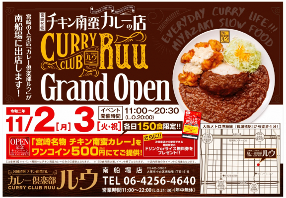 チキン南蛮×カレー!?話題の宮崎県ソウルフード!チキン南蛮カレーのお店【カレー倶楽部ルウ南船場店】が11月2日(月)にオープン!オープン記念イベントも同時開催!