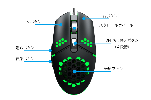 【送風ファン搭載有線マウス「ZERODATE G25」製品概要】