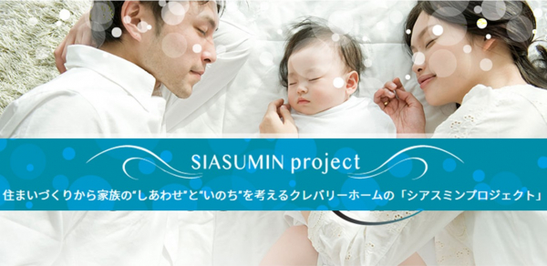 『シアスミンプロジェクト』は、「ひとクラス上の住まい」をコミュニケーションワードに掲げ、住まいの「品質」と「ゆとり」にこだわり続けてきたクレバリーホームが、住まいづくりからご家族の“しあわせ”と“いのち”を考えてゆく新しいプロジェクトです。“シアスミン”という言葉は「しあわせ(幸せ)」「あす(明日)」「すみか(住み家)」を組み合わせた造語です。