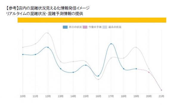 店舗内の現在の混雑状況や今後の混雑予測を行い、お客様に安心して来店いただける情報発信を行います。