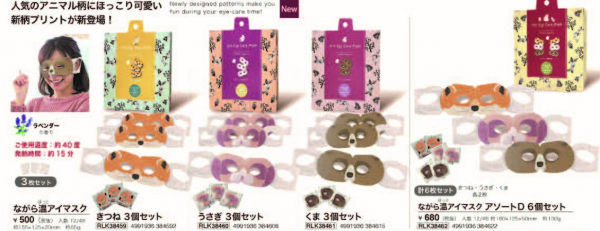 ★ながら温アイマスクアソートD 6個セット(きつね、うさぎ、くま 各2個入り)価格 680円(税抜)