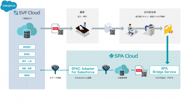 紙の帳票を「SPA Cloud」のOCR機能で読み込むと、あらかじめ設定されたキー項目に該当するデータが自動的にSalesforceに入力される仕組みにより、従来は目視と手作業でデータを入力していた担当者の負荷は大幅に軽減されました。また、「SPA Cloud」にログインした状態であれば、Salesforce側からもワンクリックで「SPA Cloud」を呼びだして、文字や数字に変換された各キー項目のデータを確認できるようになりました。