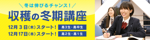 独自の「ダブル教育」システムによる、きめ細かい指導が特長の大学受験予備校「四谷学院」(経営母体:ブレーンバンク株式会社、本社:東京都新宿区、代表取締役:植野 治彦)の、「収穫の冬期講座」が12月3日より(高2生・高1生は12月17日より)スタートします。今年は夏期講座に引き続き、「通学プラン」「映像オンラインプラン」が開講され、併用も可能です。