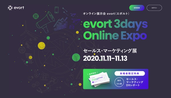 2020年11月に「セールス・マーケティング展」を含む、5つのテーマのテクノロジー・プロダクトが集まるオンライン展示会 特設展『evort(エボルト) 3days Online Expo』」を初開催いたします。