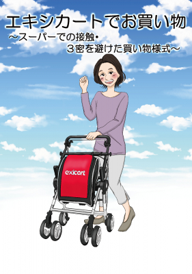 スーパーなどでの買い物時に店内用カートへの接触や、会計後のサッカー台(荷詰め台)での密を少しでも避けたい方へ、エキシカートとエコバッグを用いた新しい買い物様式をご提案しています。(別紙漫画ご参照ください)