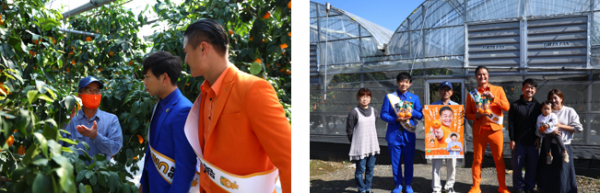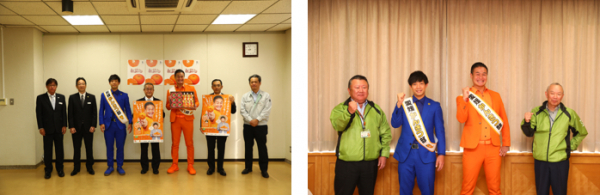 就任が決まったティモンディのお二人は、本日、県産かんきつ類の多くを出荷するJAえひめ中央(松山市) と、JAにしうわ(八幡浜市)を訪問し、関係者にご挨拶しながら、県産かんきつ類の魅力を再認識。その後、中村愛媛県知事へ表敬訪問し、「愛媛かんきつ部」のキャプテンと部長の任命証が授与されました。知事は、「愛媛のかんきつPRを快く引き受けてくれてありがとうございます。二人の明るさ、楽しさが、愛媛県に大きなパワーを与えてくれるものと期待しております。」とコメント。ティモンディのお二人は、「そもそも僕たちは愛媛県から生まれたコンビであり、そのご恩をお返ししたい。愛媛の象徴であるみかんをはじめとしたかんきつ類の魅力を日本全国、世界に向けて、全力で発信していきます!」と宣言。