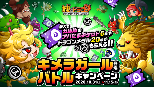 『城とドラゴン』で「キメラガール登場バトルキャンペーン」を10月31日(土)より開催!“アバたまチケット”GETのチャンス!