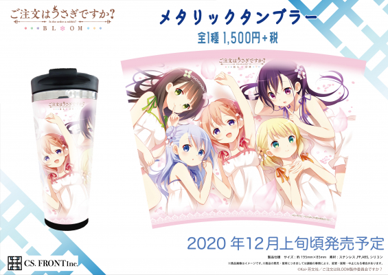 株式会社CS.FRONT(シーエスフロント)(代表取締役:細井宣和、本社:埼玉県八潮市)から「ご注文はうさぎですか? BLOOM」のメタリックタンブラー/レザーコースターキーホルダーを10月27日(火)より下記販売サイトにて予約販売を開始致しました。