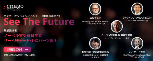 クリムゾンインタラクティブ(Crimson Interactive Pvt. Ltd.)(インド ムンバイ、代表:シャラド・ミッタル (Sharad Mittal))の運営する、世界の学術コミュニティに研究支援サービスを提供する研究支援エナゴでは、このほど、研究者、大学の研究アドミニストレーター(URA)、学術出版の関係者らを招聘し、無料オンラインイベント「See The Future」を開催いたします。ノーベル賞受賞者を含む科学と高等教育の専門家がそのビジョンを語ります。各講演は日本語音声でもお聞きいただけます。