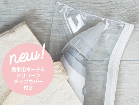 当製品は、持ち運びしやすいハンディタイプの電動鼻水吸引器として販売しておりましたが、持ち運びの際に吸引部がほこりで汚れてしまう、吸引後に吸引部が汚れておりしまいにくいといったお声が多くあがっていました。そこで今回新たに、はめやすく外れにくい専用キャップを開発し、さらに持ち運びの際に収納できる専用ポーチを併せて付属いたしました。また同時に、シンプルで使いやすい新色[グレー]のモデルを新たに開発し、弊社EC限定モデルとして販売を開始いたしました。そして、既存色[ピンク]はロゴを変更し、その他販売店にて販売を開始いたしました。