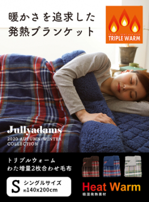 冬のご進物、クリスマスギフトに最適!Jullyadams(R)が、 吸湿発熱であったか!触れてあったか!保温してあったか! 「トリプルウォームわた入りブランケット」を発売