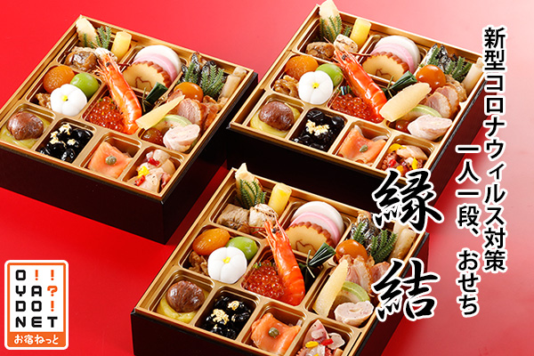 お宿ねっと[里山の休日 京都・烟河]は、 新型コロナウィルス感染対策おせち「一人用のおせち三段重−縁結−(えんむすび)」を割引価格にて11月11日より11月30日まで販売いたします。