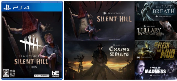 株式会社3goo(サングー)(本社:東京都渋谷区、代表取締役:ディ・コスタンゾ・ニコラ)は本日、株式会社コナミデジタルエンタテインメントの『サイレントヒル』とのコラボチャプターを含む『Dead by Daylight サイレントヒルエディション 公式日本版』 PlayStation(R)4専用パッケージを発売したことをお知らせします。日本限定で発売される本製品には、『Dead by Daylight』ゲーム本編と2つの追加コンテンツ『サイレントヒル』チャプターとオリジナルチャプター『憎しみのチェーン』が収録され、更にコラボチャプターを記念して制作されたパッケージ版限定の特典「サイレントヒルエディション:スペシャルサウンドトラック」(全8曲)CDも同梱されて¥4,600円(税別)というお得な新パッケージとなります。