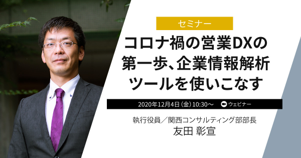 『コロナ禍の営業DXの第一歩、企業情報解析ツールを使いこなす』https://www.powerweb.co.jp/seminar/seminar20201204.html?utm_source=pr201204&utm_medium=pr&utm_campaign=dn