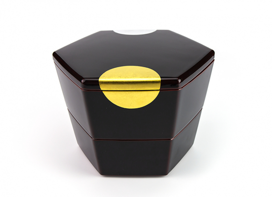 月と太陽をモチーフにした伝統的な日月図柄のお重です。