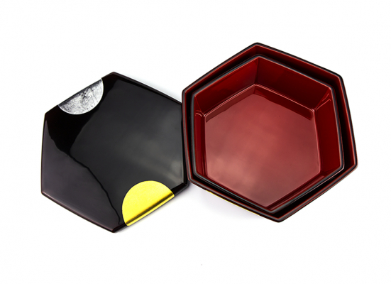 【越前漆器 箔蒔絵 日月 溜内朱 入子重】