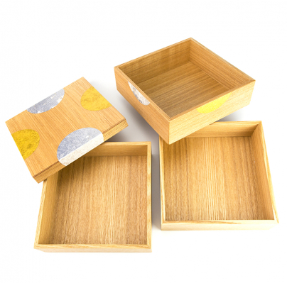 硬く歪みの少ないタモ材の特徴を活かした三段重です。