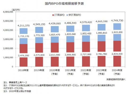 【矢野経済研究所プレスリリース】BPO(ビジネスプロセスアウトソーシング)市場に関する調査を実施(2020年)2019年度のIT系BPO市場は2兆5,758億円、非IT系BPO市場は1兆7,733億円