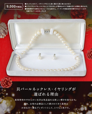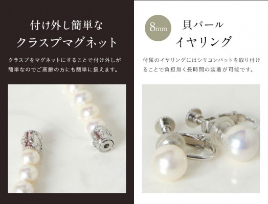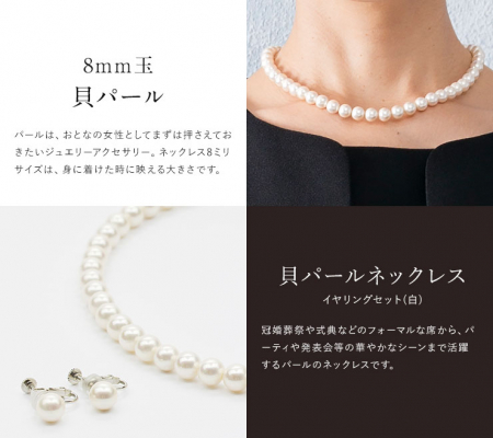 岩佐公式オンラインショップにて、ブラックフォーマル商品を単品で15,000円(税込)以上ご購入のお客様へ、「貝パールネックレス・イヤリングセット」(9,000円相当)をプレゼント致します。