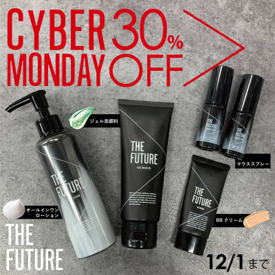 STORiiY(ストーリー)株式会社(東京都渋谷区:代表取締役 渡辺真大)が展開するメンズブランド「THE FUTURE(ザ・フューチャー)」はこの度初めて、Amazonで開催される「サイバーマンデー」に参加いたします。期間は11月30(月)0:00から12月1日(火)23:59まで。どこよりもお得となるほとんど全品30%OFFにて販売いたします。発売からわずか半年で数々のベストコスメ を受賞しているTHE FUTUREをこの機会にぜひ、お試しください