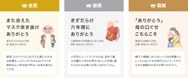 今回は、当社が「ほけんの窓口」第1号店をオープンしてから今年で20周年であることにちなみ、募集テーマを「ありがとう」といたしました。人生においても生活においても老若男女問わずに身近な言葉であり、忘れられない思い出や、今だからこそ言える感謝の言葉等の作品が集まりました。また、コロナ禍の「今」を捉えた作品として自粛期間を通して改めて気づいた家族への感謝や、日常・当たり前への感謝、医療従事者への感謝等、新型コロナウイルスにまつわる川柳も多く見られましたので、ぜひご覧ください。