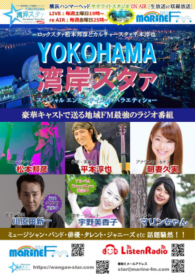 ロックバンド・コルベッツのリーダーでヴォーカリストのロックスタァ「松本邦彦」とジャニーズ出身の作家で実業家・大学教授のカルチャースタァ「平本淳也」の2スタアが送る「YOKOHAMA湾岸スタァ」は、愛と勇気と元気と希望、そして夢をもってお届けする豪華なエンターテイメントバラエティです!