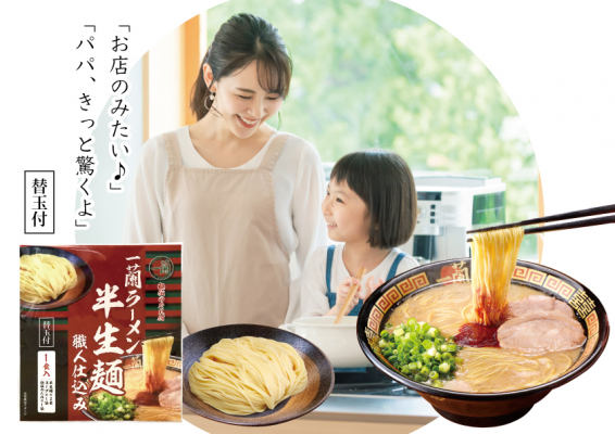 株式会社一蘭(創業:昭和35年/本社:福岡県福岡市博多区/代表取締役社長:吉冨 学)では、おみやげ一蘭史上初の半生麺を、12月23日(水)から国内の一蘭店舗ならびに一蘭公式通販にて販売いたします。商品名は「一蘭ラーメン 半生麺 職人仕込み」です。職人がもちもちとした食感にこだわった麺に、この商品のために開発したなめらかなスープと秘伝のたれが絡むことで生まれる美味しさをお楽しみいただけます。