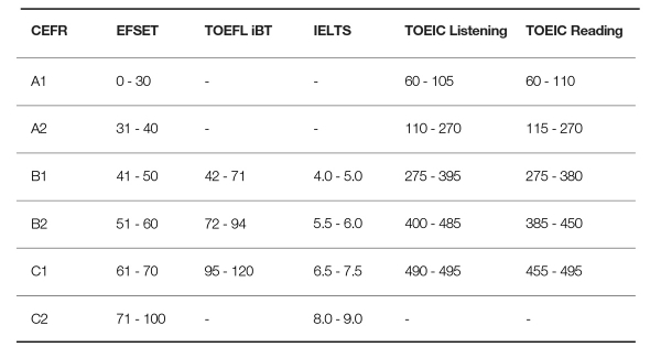 従来型テストでは測定できる語学レベルの範囲に限りがありますが、EF SETでは初級から上級(A1〜C2)までCEFRが示す全てのレベルの語学力を測定可能。また、EF SETスコアはTOEFL、IELTS、TOEIC等へのスコア換算も可能で(50分版テスト)、自主的な学習進捗の確認や受験料、受験会場の制限などの理由により頻繁に従来型テストが受けられない場合の代替ツールとしての活用が期待されています。