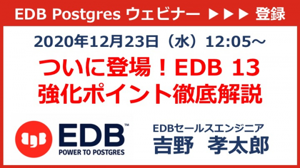 EDBは「ついに登場!EDB 13 強化ポイント徹底解説」と題するウェビナーを12月23日(水)に開催いたします。