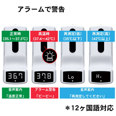 ・警告温度の下限温度を設定可能(警告温度36〜39℃まで調整)