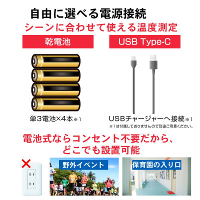 ・電源は、「乾電池」、「USB給電」 ※乾電池、USB-AC充電器は付属しておりません。