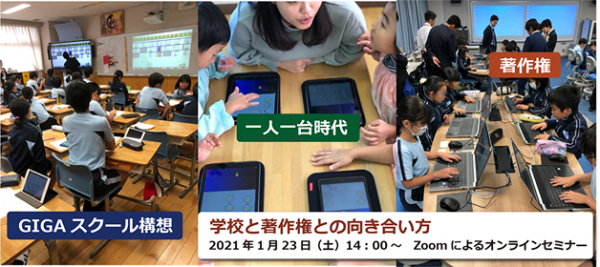 教職員の方々を対象としたオンラインセミナー「学校と著作権との向き合い方〜“GIGAスクール構想”דオンライン授業”ד著作権法第35条の改正と施行(授業目的公衆送信補償金制度等)”」〜”を開催します