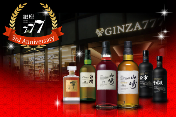 この福袋は、「山崎25年」「白州25年」をはじめ、国産ウイスキーの最高峰「響30年」、「山崎ミズナラ18年2017EDITION」、「余市リミテッドエディション2019」、「宮城峡リミテッドエディション2019」などを含む希少なウイスキー全30種の中から10本を詰めた特別なセット。ご購入を希望される方を対象に、1月4日(月)午前11時より銀座777ホームページの専用フォームにて応募受付を行います。