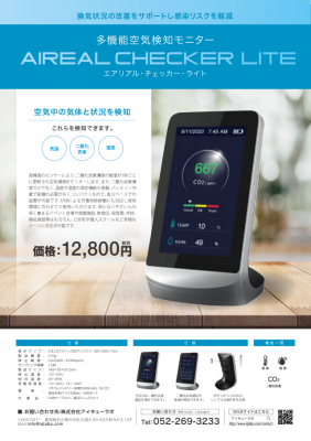 換気状況の改善をサポートし、感染リスクを軽減する多機能空気検知モニター「AIREAL CHECKER Lite(エアリアル・チェッカー・ライト)」を12月22日より販売を開始