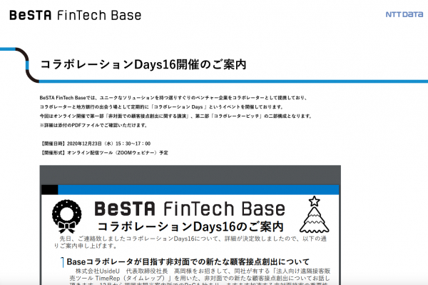 ※ BeSTA FinTech Lab(R)は、株式会社NTTデータが地方銀行とベンチャー企業をつなぎ、今までにない新しいサービスを創出することを目的に、2016年10月に設立。