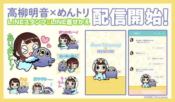 株式会社インクルーズ(東京都渋谷区、代表取締役社長 山? 健司)は、LINE株式会社(東京都新宿区、代表取締役社長 出澤 剛)が運営するコミュニケーションアプリ「LINE」内のショップにて、「高柳明音×めんトリ」のコラボLINEスタンプとコラボLINE着せかえを2020年12月24日(木)に一斉配信致しました。