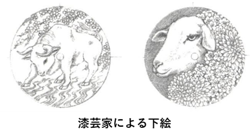 ■力強い姿の牛とやわらかい表情の羊を 漆で表現