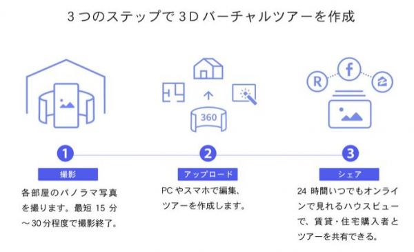 ○360°パノラマ物件を撮影し、VR内覧コンテンツを手軽に作成できるスターターキット