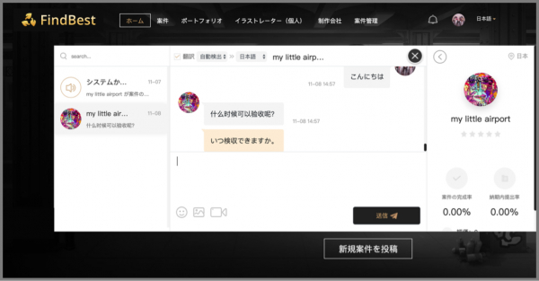 FindBestは海外向けに各国で活躍するプロのイラストレーターが、世界の発注業者との仕事を行うことを可能にするサービスとなっています。