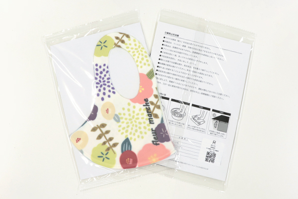 商品は取扱説明を記載した台紙と一緒に熱圧着式個装袋に入れた状態でお届けするため、そのまま配布や販売にも便利です。