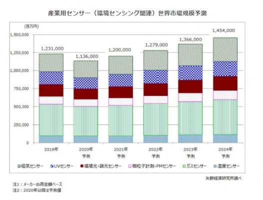 【矢野経済研究所プレスリリース】産業用センサー(環境センシング関連)に関する調査を実施(2020年)〜2024年の産業用センサー(環境センシング関連)世界市場規模を1兆4,540億円と予測〜