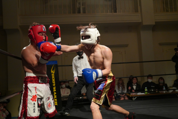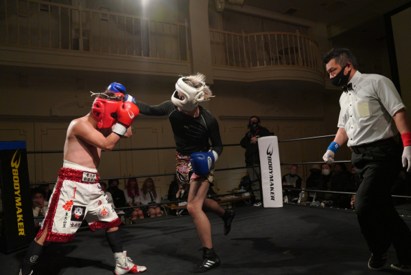 この試合には特別ルールとして2分2R(恵良選手は攻撃禁止)が適応された。