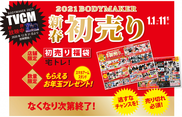 「BODYMAKER」2021年幕開け! 直営店舗正月セール 2021.1.1(祝)いよいよスタート! 新年もスポーツのある日常を全力で応援します。