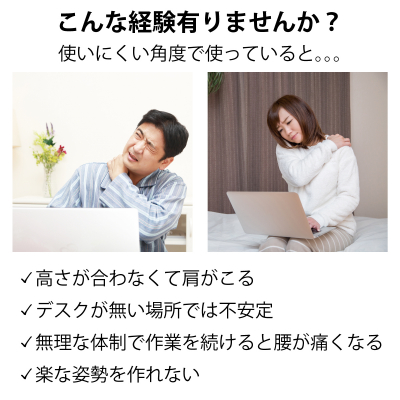 テレワークに最適!楽な姿勢で作業ができる「折りたたみノートパソコンテーブル」miraion