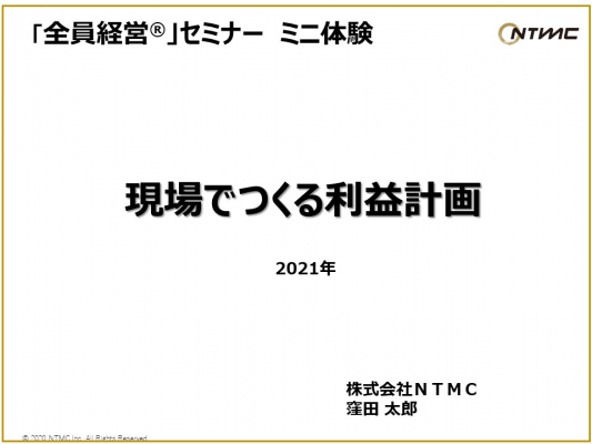 「全員経営」を提唱する経営コンサルティング会社の株式会社NTMC(東京都港区、代表取締役社長 森田 直行)は、何かと忙しい中小企業の経営者を対象に、社長・森田の経営ノウハウをギューッと詰め込んだ「全員経営セミナー」のコンテンツをインターネット上で体験できる「全員経営セミナー ミニ体験」のページを、2021年1月20日、自社のホームページ上に公開しました。