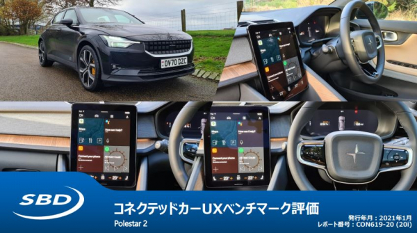 英国に本社を置き自動車技術に関する調査およびコンサルティングを手掛けるSBD Automotiveジャパン(名古屋市)では、欧州・米国・中国・日本市場で提供されている最新のナビゲーションおよびインフォテイメントシステムを評価対象としたUXベンチマーク評価レポートをシリーズで発行しています。2021年1月12日に発行した最新レポートではPolestar 2搭載の最新インフォテイメントシステムを評価しています。