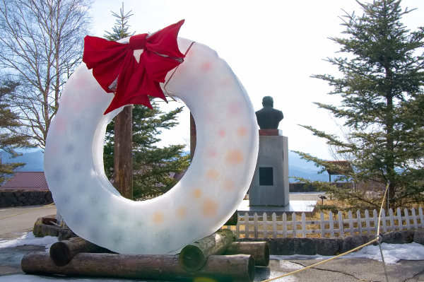 <清里高原 清泉寮> 「巨大!氷のリース」 清泉寮本館前に登場!直径2.4m、重さ800kgで国内最大級
