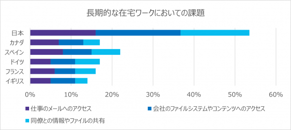 日本のオフィスワーカーの半数以上が、リモートワーク下ではメールや文書へのアクセスと共有が主な課題であると回答